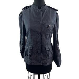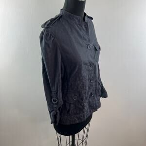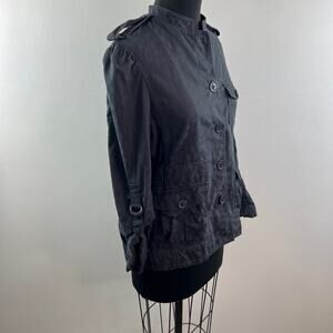 Marc by Marc Jacobs Black Utility Jacket Cotton Mock Neck Front Button Size 10