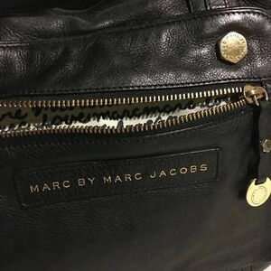 Authentic marc by Marc Jacobs Black leather Messenger/ laptop/ Business/travel/ this bag is for your every need main compartment 3 pocket at interior wall 1 zip closure & zip closure at top exterior 1 center zip pocket gold-tone hardware cotton fabric lining, lining have some stains double strap & shoulder strap interior have some scratches & Strap have some tear please check all photos hight 14.5” width 15” depth 4” Strap drop 9” shoulder strap 21