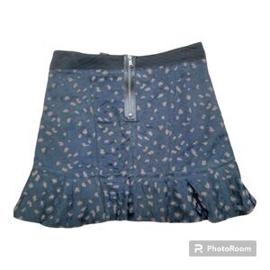 Marc by Marc Jacobs Blue Leopard Print Flared Mini Skirt Pleated Zippers Size 6