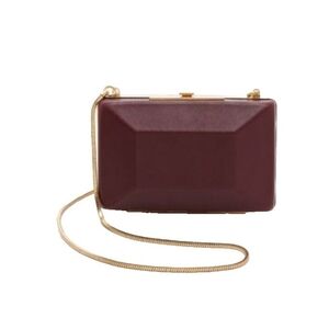 Description: evening bag lined in leather, edges and removable shoulder strap in metal.