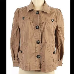 Marc by Marc Jacobs woman's brown button up jacket. Jacket is made of a cotton blend and has large buttons up the front and on the side pockets. Jacket is a woman's size 6.
