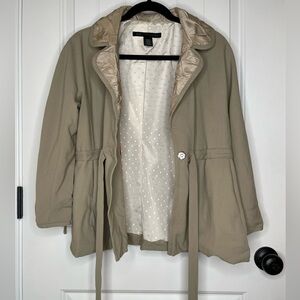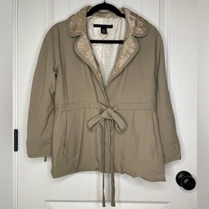 Marc by Marc Jacobs Wool-Blend Satin Collar Snap Front Waist Tie Coat Jacket with Pockets Light Neutral Tan Women's Medium