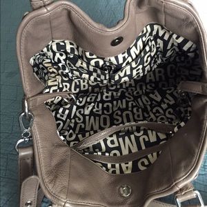 Beautiful Taupe leather authentic MBMJ handbag. Bag shows minimal signs of wear on outside. No tears rips or fading. Interior canvas liner has some staining from makeup mishap. Bag receives multiple compliments and the color goes from season to season seamlessly. Comes with dust bag and all tags (not attached)