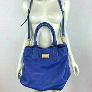 Marc by Marc Jacobs Cow Leather Tote Cross body Purse Handbag Brass details Blue