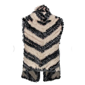 Marc by Marc Jacobs Cream Black Striped Knitted Ultra Soft Real Rabbit Fur Pocketed Vest