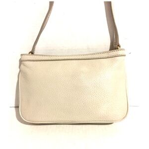 Stylish cream crossbody bag with adjustable strap. Perfect for everyday use.main compartment 1 zip pocket closure at interior wall logo at front lining have some stains exterior marks creasing stains hight 6.5” wide 9.5” depth 2” strap drop 27” adjustable The dimensions are based on approximately measurements before placing an order please check take a moment to view all photos using feature for a closer look