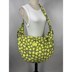 Marc by Marc Jacobs Crossbody Sling Slingy Hobo Bag Fluorescent Yellow Grey Heart Print