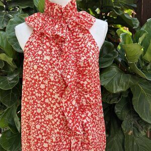 Length - 36 inchesThe Marc by Marc Jacobs dress in size small features a floral pattern in a faded bamboo tan color, making it perfect for various occasions such as travel, weddings, parties, and more. The sleeveless design with a zipper closure and ruffle accents adds a stylish touch to the knee-length shift dress. Made from a luxurious blend of cotton and silk, this woven dress is ideal for the summer and spring seasons, and it should be dry cleaned for maintenance. The wide hem detail completes the chic look of the dress, which is a versatile addition to any woman's wardrobe.