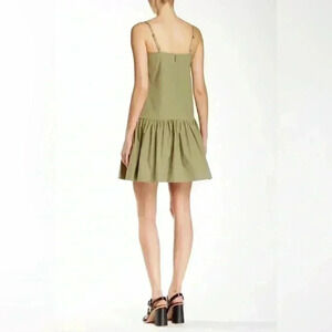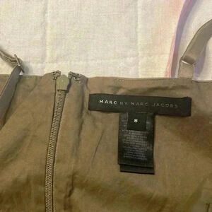 In a sage green color // no longer available// adjustable straps and zipper on the back // marked an 8, would say best for a medium maybe large due to minimal stretch // im a medium and it fits with a little bit of room, the length is just too long on me