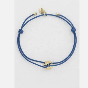 Marc by Marc Jacobs Bracelet Bolt Friendship Cord. Electric Blue Lemonade/goldtone. Add a girly twist and delicate charm to any outfit with the grown-up version of Marc's friendship bracelet. Adjustable thin nylon cord slides at the knot areas. Has logo & crystal medallion charm & mbmj's classic logo bolt. Wear alone or stack with other bracelets.