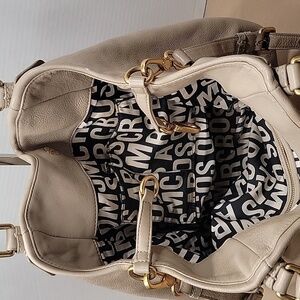 Marc by Marc Jacobs Greige / Taupe Shoulder Bag w/ Handles & Gold Tone Hardware. Leather, Gold-Tone Hardware, Rolled Handles & Single Adjustable Shoulder Strap.
