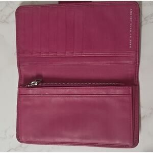 Elevate your accessory game with this vibrant Marc by Marc Jacobs wallet! Crafted from luxurious hot pink leather and accented with chic gold hardware, this wallet is the perfect blend of style and functionality. It can also be used as a clutch, adding versatility to your wardrobe.