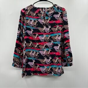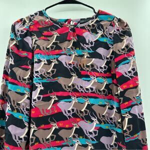 Marc by Marc Jacobs Impala Deer Print Silk Multicolor Long Sleeve Top Size 4