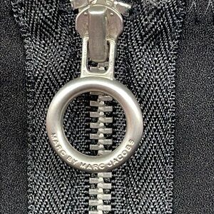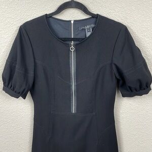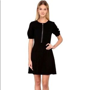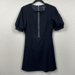 Marc by Marc Jacobs Irving Crepe Zip Front Mini Dress Black Puff Sleeve Sz 6