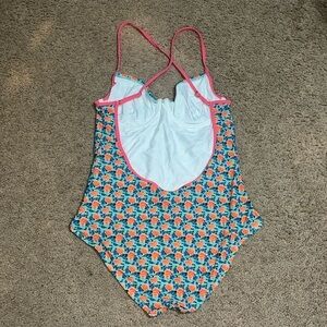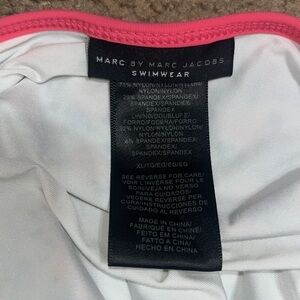 Marc by Marc Jacobs Jerrie Rose Floral One Piece Swimsuit Pale Jade XL. Manufacturer Style No. M4003786. Super cute mini floral print. Adjustable crisscross shoulder straps. Low cut back. Underwire. UPF 50+. Modeled in size S. Great pre-owned condition. Freshly laundered; though shows light signs of hygienic liner residue. Smoke/pet free home. Offers welcome. Bundle & save. Ship same/next day. Packaged w/ care.