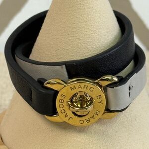 Marc by Marc Jacobs Leather Black & Gray Wrap Bracelet Gold Turnlock Clasp