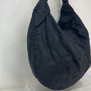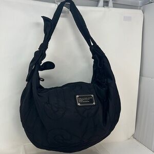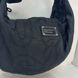 This is a beautiful Marc by Marc Jacobs Logo Quilted Nylon Hobo Shoulder Bag. Excellent condition. Minor spotting on the interior logo lining. Zip top closure. No odors. No tears. 19” x 13” with a 6” double shoulder strap drop. Super roomy. Lightweight and packs easily.