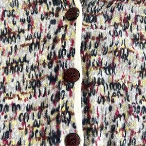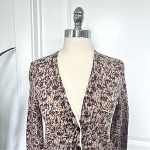 Marc by Marc Jacobs multicolor button down cardigan. Cream border around neckline, down sides and in pockets. Maroon buttons with MJ engraved. V-neck, ribbed knit around wrists and hem. Size XS