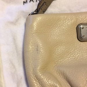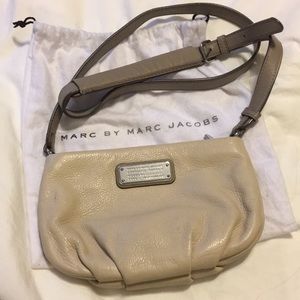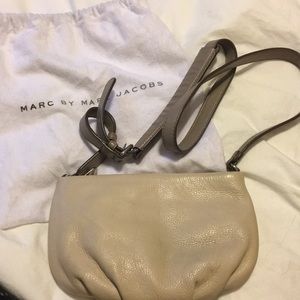 Gorgeous pebbled leather Marc by Marc Jacobs cross-body bag features a logo plate and a pleated bottom. Silver-tone hardware. Lined interior with 1 patch pocket. Optional, adjustable shoulder strap. Comes with dust bag.