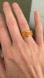Bold ring with orange and gold design. Adds a modern touch to any look.