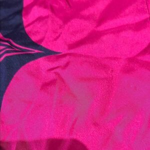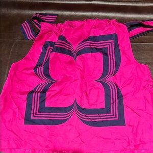 Chic pink top with a striking black geometric pattern. Perfect for a bold look. Some spots on front shown in pictures. 100% silk.