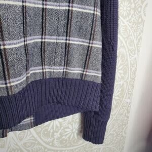 Cute y2k blue plaid bomber jacket with knit sweater sleeves