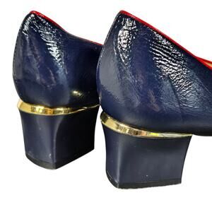 Marc by Marc Jacobs Pumps Womens Size 38 Navy Red Patent Leather Block Heel Loafers Chain Trim
