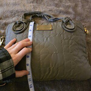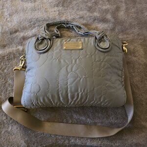 Marc by Marc Jacobs Quilted Nylon Laptop Bag Taupe Gray Gold Hardware Crossbody