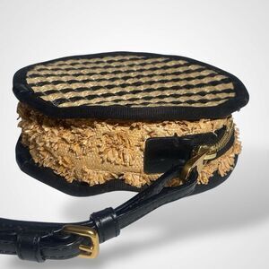 Marc by Marc Jacobs Round Striped Wristlet Bag Jute Tan & Black Boho Casual