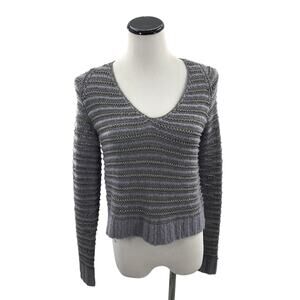 Marc by Marc Jacobs Rudy sweater. Open weave. Semi cropped fit. Long sleeves. Metallic threading. Color name is slate violet multi. Body is polyester, wool, nylon, metallic. Cuffs and welt are wool and nylon. Dry clean only. In preowned condition, some fabric wear, some minor loose threads.