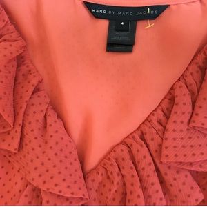 Marc by Marc Jacobs Red Polka Dot Ruffle Faux Wrap V Neck Casual Dress Size 4. Pre-owned, like new.