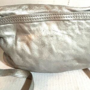 Elegant silver metallic leather crossbody bag perfect for any occasion. Features a sleek design with a secure closure. Ideal for adding a touch of sophistication to your outfit.main compartment 1 zip pocket closure at interior wall pocket at back lining have some stains exterior have marks scratches hight 9” wide 12” strap drop 22”The dimensions are based on approximately measurements before placing an order please check take a moment to view all photos using feature for a closer look