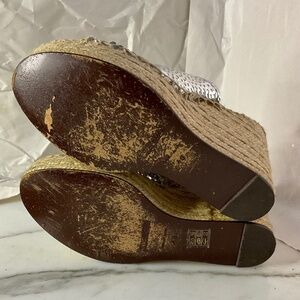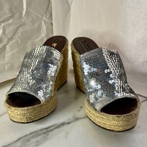 Marc by Marc Jacobs Silver Sequin Wedge Espadrille Slides 40 EU only worn in the showroom. 1 1/2" platform 4 1/2" heel