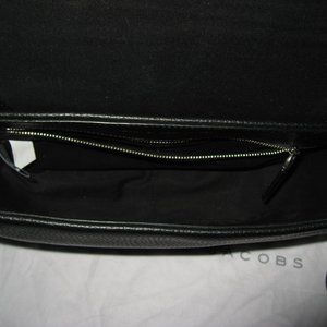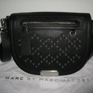 Auth NWT Marc Jacobs Studded Shoulder/Crossbody Flap Reqruit Bag in black leather.