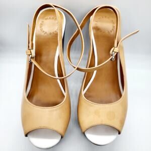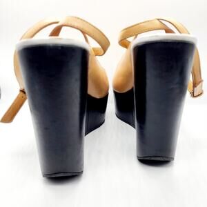 Marc by Marc Jacobs Tan Beige Leather Ankle Strap Wedge Sandals Women's Size 8