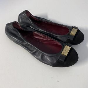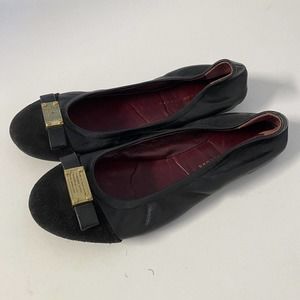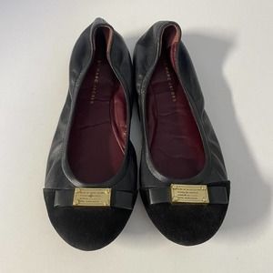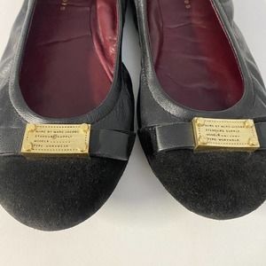 Marc by Marc Jacobs Tuxedo Ballet Flat Black Leather Gold Logo Round Cap…