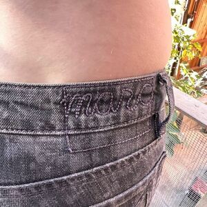 Really cool jeans from Marc by Marc Jacobs. I remember seeing them and having to have them because of the design which is black faded denim with white paint splatter and lighter gray bleach distressed marks with a sweet relaxed tapered fit that I wore with the ankle folded, as pictured.
