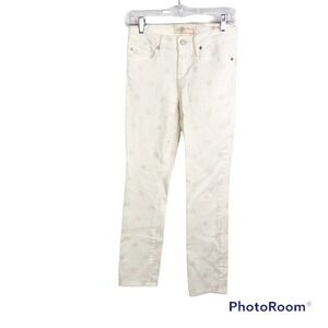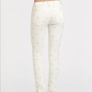Marc by Marc Jacobs Lou polkadot skinny jeans. Color is called bright white. White denim Skinnies with embroidered polkadots all over. Zip and button front closure.