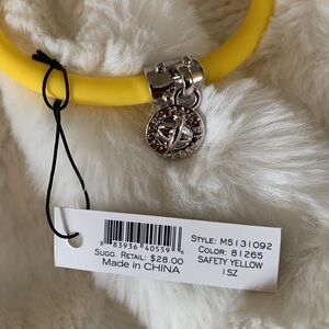 Stylish and modern design by Marc Jacobs. This yellow rubber expandable bracelet with silver tone charm. New with tags. Makes a great gift.
