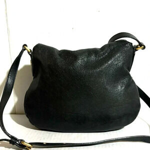Marc by Marc Jacob’s black leather crossbody handbag with gold tone hardware main 2 compartment 3 pockets at interior 1 zip closure open pocket at front logo at front zip closure at front hight 9” wide 11.5” depth 3.25” strap drop 22. 5” The dimensions are based on approximately measurements before placing an order please check take a moment to view all photos using feature for a closer look