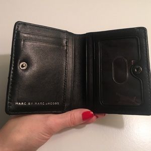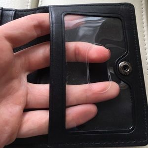 Bifold black leather quilted wallet, like new condition, 1 pocket for bills, ID, 5 pockets for credit cards