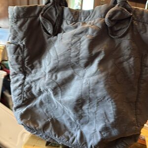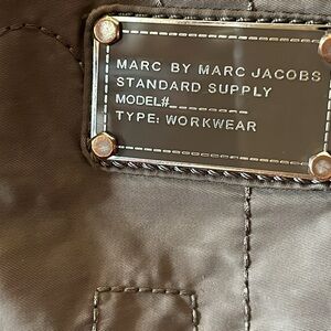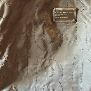 Marc by Marc Jacobs hobo handbag. I have one very small call out on one handle is frayed a tiny bit. I wanted you to be aware of this before you purchase the bag. It is not very noticeable, but I took a picture of it. The dimensions on the bag are 17 inches wideand 14 inches long. Each side of the bag has a pocket for your cell phone or other essentials.
