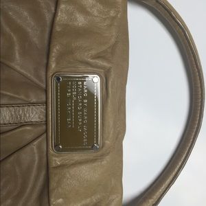 This beige bag is 100% authentic. It has been worn for six months and is ready to be recycled. The inside is very clean. It has a zipper pocket and 3 small open pockets. It has few marks on the outside as the pictures show. Please make me an offer!!! It retails for $430. More pictures? Sure!!