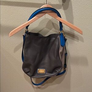 Marc by Marc Jacobs woman's leather dark grey tan and blue purse.