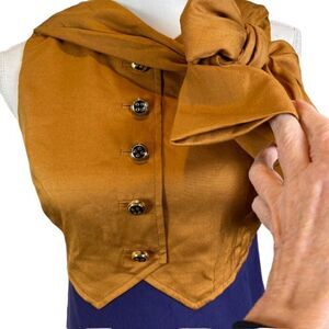 Marc by Marc Jacobs Silk Alessandra Pussybow Dress Rare Colorway Purple and Gold Size 4. Adjustable Bow. Gorgeous Gold and black enameled buttons. Excellent condition. Bow is long and adjustable and attached on each shoulder. Front pockets, back zipper with ribbon pull, See photos for details and measurements. As seen on Gossip Girl in another color. elegant, luxury, date night, wedding, graduation, gold and purple, cruise, office, professional, minnesota vikings, los angeles lakers