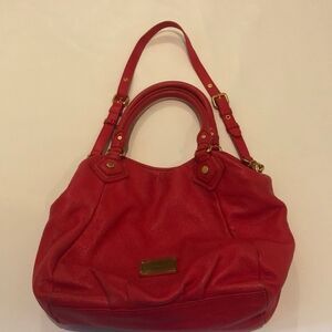 Marc by Marc Kacobs red pebbles grained leather satchel bag. It has two straps, one to hold the bag and the other for crossbody. It has some wear on the edges of the bag, please see pics as I posted all the wear on the bag. This bag is in excellent condition and absolutely adorable.