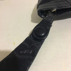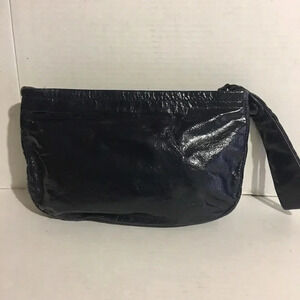 Marc by Marc jacobs Navy blue glossy leather with silver- tone hardware clutch main compartment 2 open pocket & zip closure at top exterior pocket at center interior with turn lock cotton lining fabric some stains & scratches please check all photos