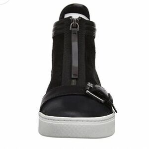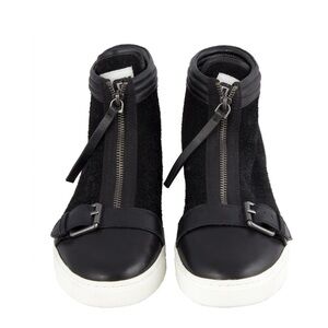 Marc By Marc Jacobs, America: Black Leather & Suede Hightop Sneakers, Slight Platform, Zipper Closure, Buckle Detail, Silver Toned Hardware, Leather Interior
