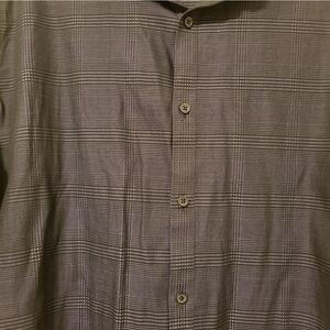 Marc Anthony slim fit purple/black collard button-down, size XXL, long-sleeved, 2 button closure on cuffs, small deodorant stain under right arm (not treated), 100% cotton, great condition.