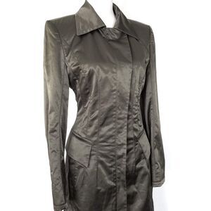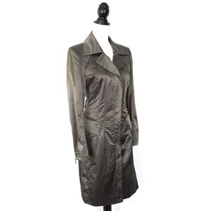 Marc Cain Olive Green Satin Trench Jacket Zip Front Luxury Designer Size 2